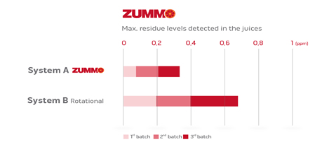 AINIA, certified by the National Accreditation Entity -ENAC -, has conducted comparative tests between the two systems concluding that, during continuous operation, Zummo squeezing system gets levels up to 153% lower than the rotary system used by competitors.